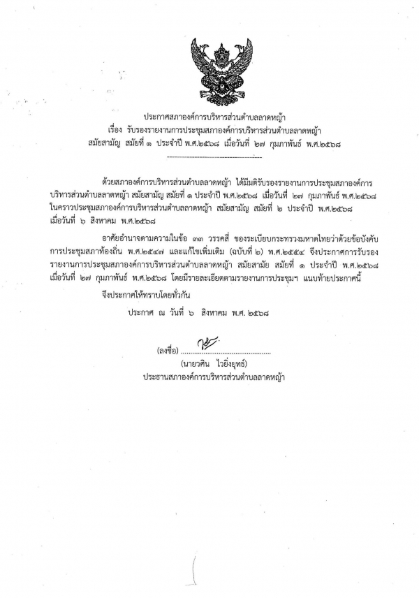 รับรองรายงานการประชุมสภาฯ สมัยสามัญ สมัยที่ 1 ประจำปี พ.ศ.2568