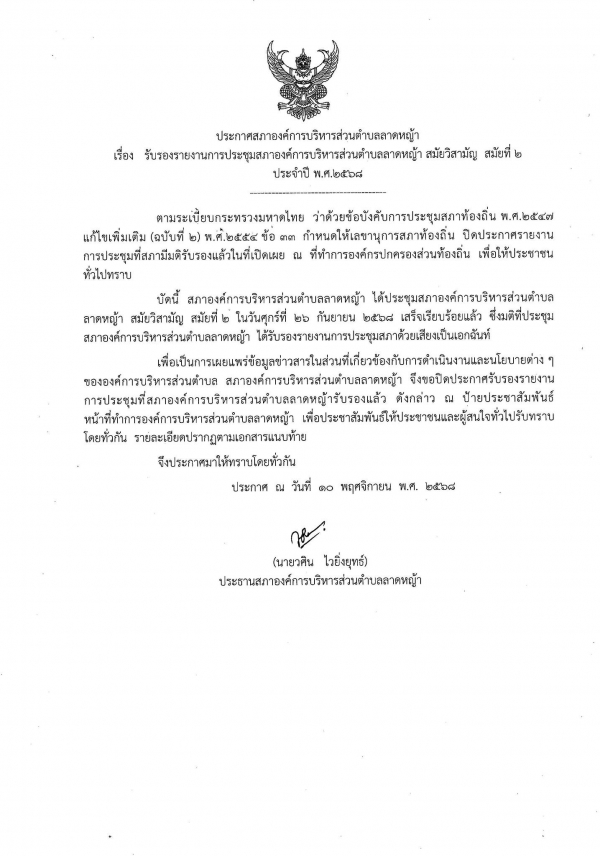 ประกาศ...อำเภอเมืองกาญจนบุรีประกาศ...อบต.ลาดหญ้า เรื่อง รายงานการประชุมสภาองค์การบริหารส่วนตำบลลาดหญ้า สมัยวิสามัญ สมัยที่ 2 ครั้งที่ 1 ประจำปี พ.ศ. 2568 และ เรื่อง รับรองรายงานประชุมสภาองค์การบริหารส่วนตำบลลาดหญ้า สมัยวิสามัญ สมัยที่ 2 ประจำปี พ.ศ.2568