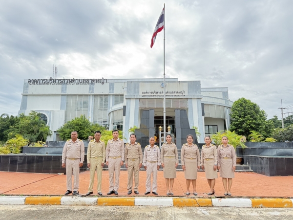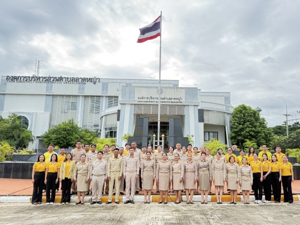 นางสาวสุภากร เสือส่าน รองนายกองค์การบริหารส่วนตำบลลาดหญ้า พร้อมด้วย สมาชิกสภาฯ ข้าราชการ และ พนักงานเจ้าหน้าที่ จัดกิจกรรมเคารพธงชาติและร้องเพลงชาติไทย เนื่องในวันพระราชทานธงชาติไทย 28 กันยายน ของทุกปี (Thai National Flag Day) และประดับธงชาติไทยบริเวณด้านหน้าอาคารสำนักงาน อบต. เพื่อเป็นการสร้างความภาคภูมิใจของคนในชาติและเป็นการน้อมรำลึกในพระมหากรุณาธิคุณ พระบาทสมเด็จพระมงกุฎเกล้าเจ้าอยู่หัว ที่ทรงพระราชทานธงไตรรงค์เป็นธงชาติไทย