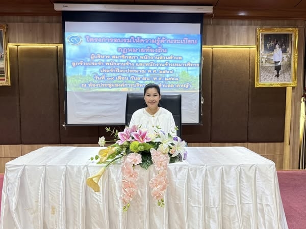 นางสาวสุภากร เสือส่าน รองนายกอบต.ลาดหญ้า เปิดโครงการพัฒนาและฝึกอบรมคุณธรรมจริยธรรมในการป้องกันการทุจริต สำหรับคณะผู้บริหาร สมาชิกสภาองค์การบริหารส่วนตำบล พนักงานส่วนตำบล ลูกจ้างประจำ พนักงานจ้าง และพนักงานจ้างเหมาบริการ ประจำปีงบประมาณ พ.ศ. 2568