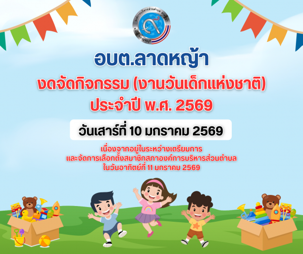 ประชาสัมพันธ์ อบต.ลาดหญ้า งดจัดกิจกรรม (งานวันเด็กแห่งชาติ) ประจำปี พ.ศ.2569